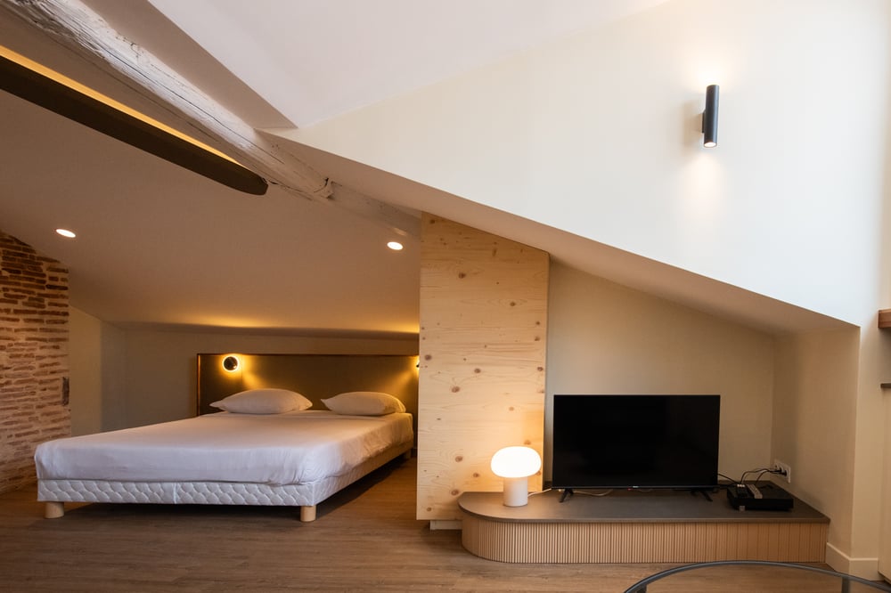 Situated on one of the liveliest and authentic neighborhoods in Lyon, at the heart of Croix-Rousse and 15 minutes walk from the Presqu'île, you will definitely enjoy the calm and comfort of this amazing 32 m² apartment with lovely decoration. It is on the 4th floor without elevator. Equipped with air conditioning for more pleasant temperatures in summer ! You will benefit from a beautiful bright space of 32 m², with a sleeping area with a 160 x 200 queen size bed, a desk and a large cupboard, and also a living room/kitchen area with a single sofa bed sized 120 x 180 (perfect for 1 child, less suitable for an adult), a HD TV, air conditioning and a fully equipped kitchen including oven and dishwasher. To the left of the kitchen, you will find a bathroom with shower, WC and towel dryer. Finally, to the left of the bathroom, a laundry area with a washing machine and storage space. This is the perfect place for a business trip, or a romantic one. WIFI available, sheets and towels are included. You will find convenience products at your disposal (pasta, rice, spice, coffee, tea...), and a Traveller's Guide containing useful information for your stay (WIFI code, notices, nice restaurants around...). Checkin and checkout are totally easy and independant thanks to a safe keybox. Checkin is from 3 PM and checkout is possible till 11 AM the day you leave. **Our services** Late checkout possible until 1PM for a supplement of 18 (subject to availability, please send your request the day before you leave at the latest). According to our conditions on our listing, parties and any noisy event (loud music etc...) which can disturb our neighborhood are strictly forbidden, such as smoking into our apartment. Any breach of these rules will lead to a financial penalty. Thanks for your vigilence :)